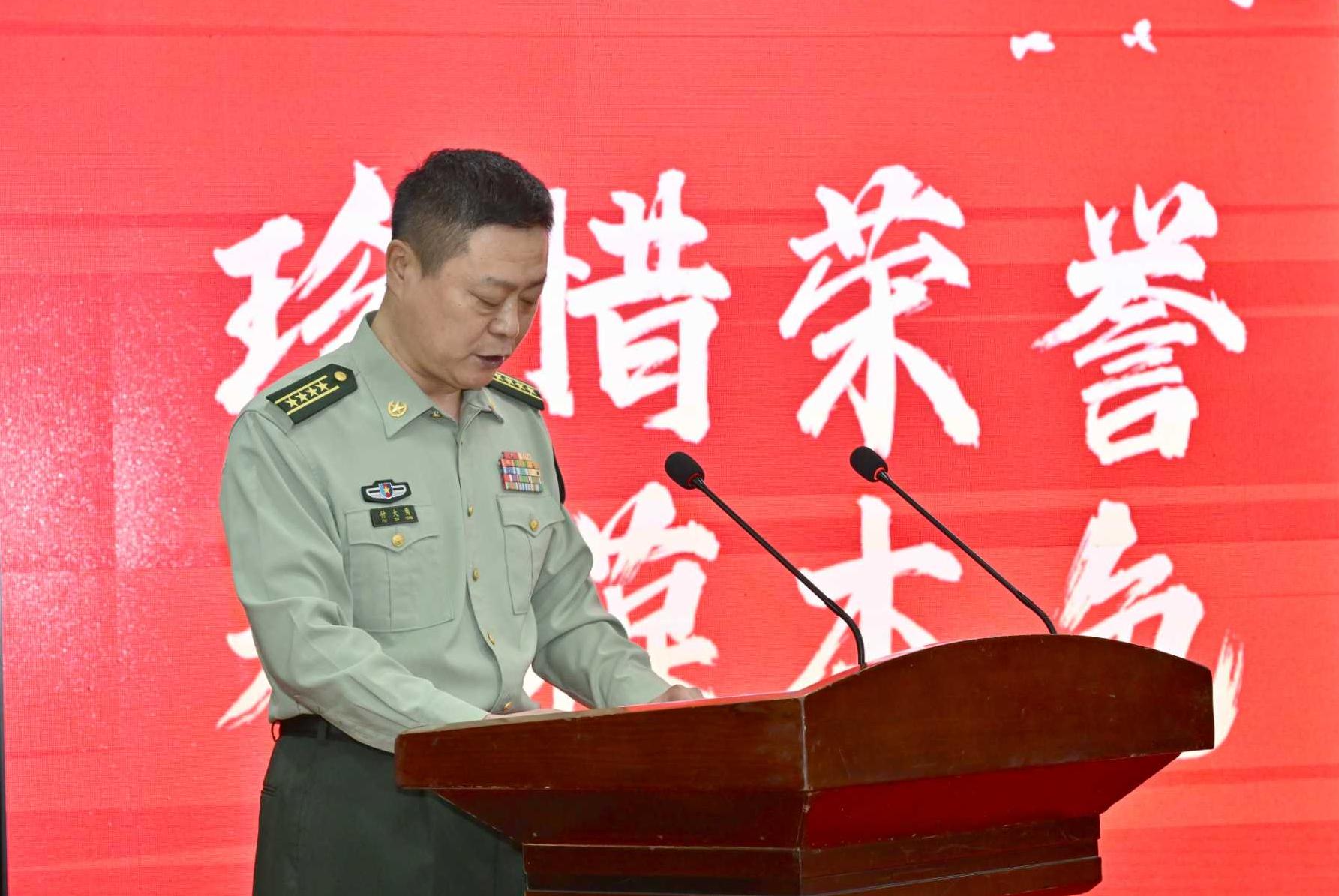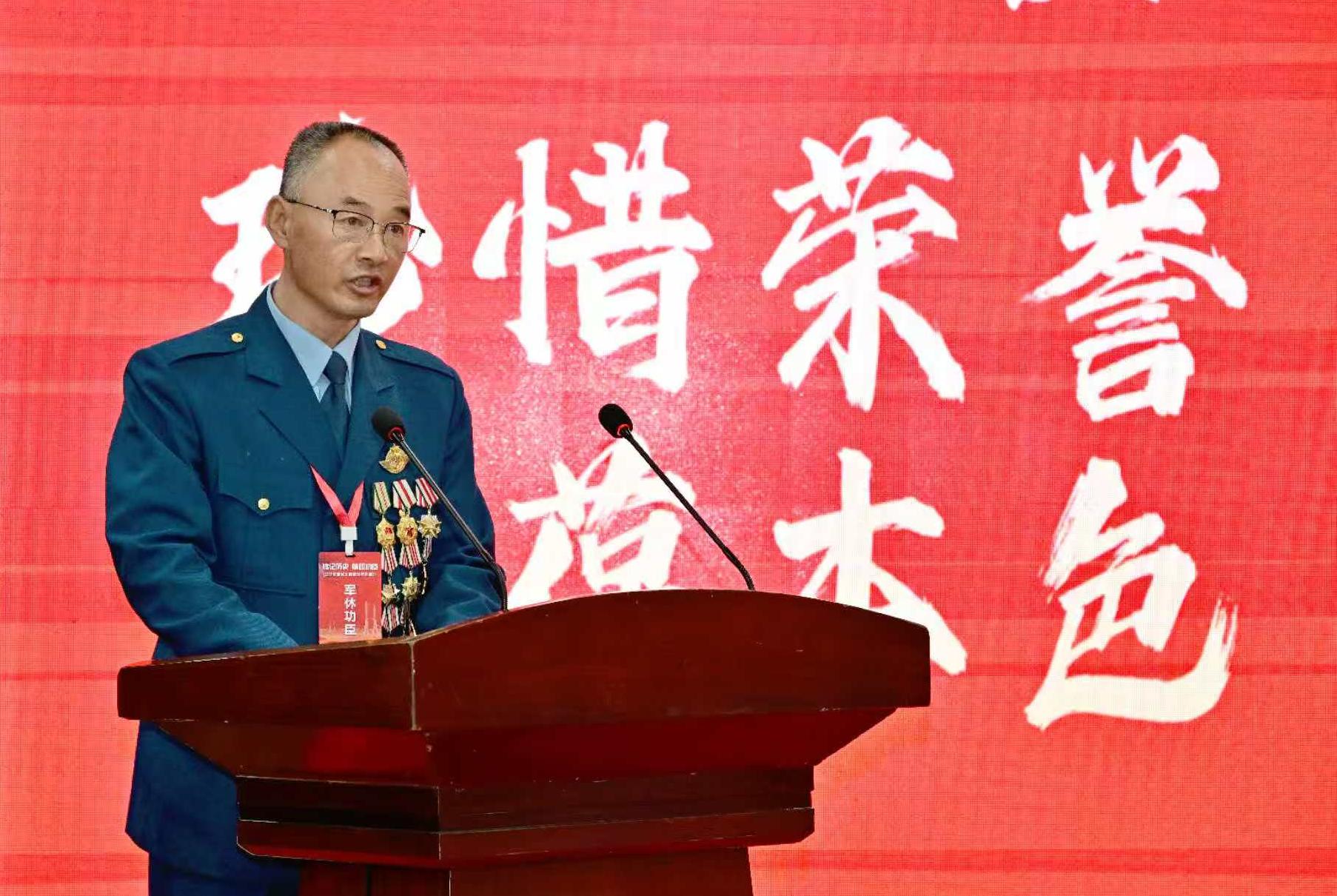 大连市军休干部窦树军代表军休功臣发言,承诺广大军休干部将“珍惜荣誉、永葆本色”,坚定不移听党话、感党恩、跟党走,持续发挥余热,为强国强军事业贡献力量。